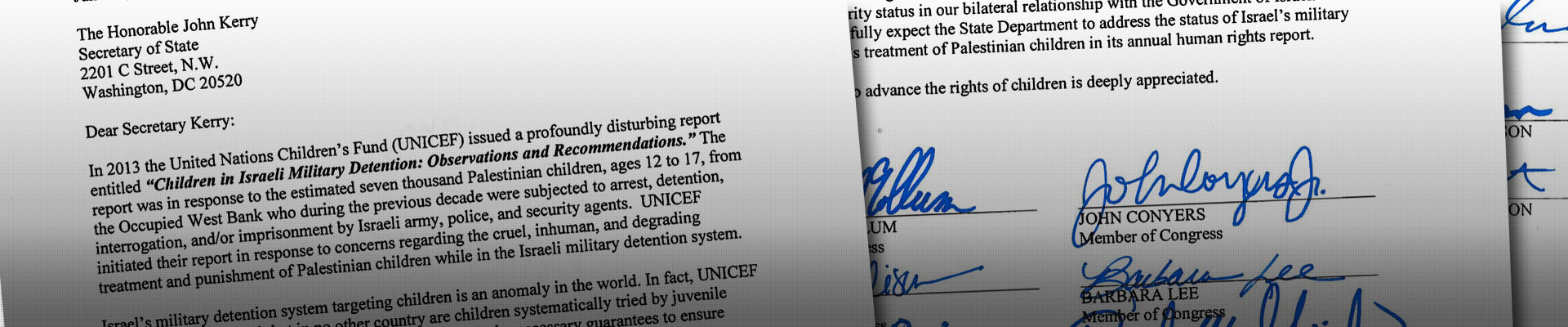 In June 2015, after three days of advocacy coordinated by the No Way to Treat a Child campaign, 19 members of Congress sent a letter to U.S. Secretary of State John Kerry urging him to prioritize the issue of Palestinian children in Israeli military detention.