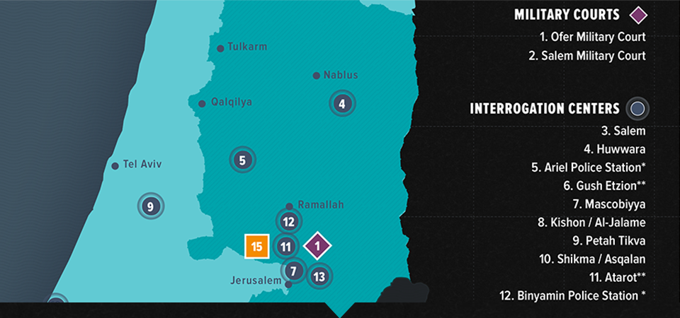 The Israeli military detention system consists of a network of military bases, interrogation and detention centers, police stations and prisons in the West Bank, including East Jerusalem, and inside Israel. Some of these facilities are inside Jewish-only settlements in the West Bank or closed military areas.